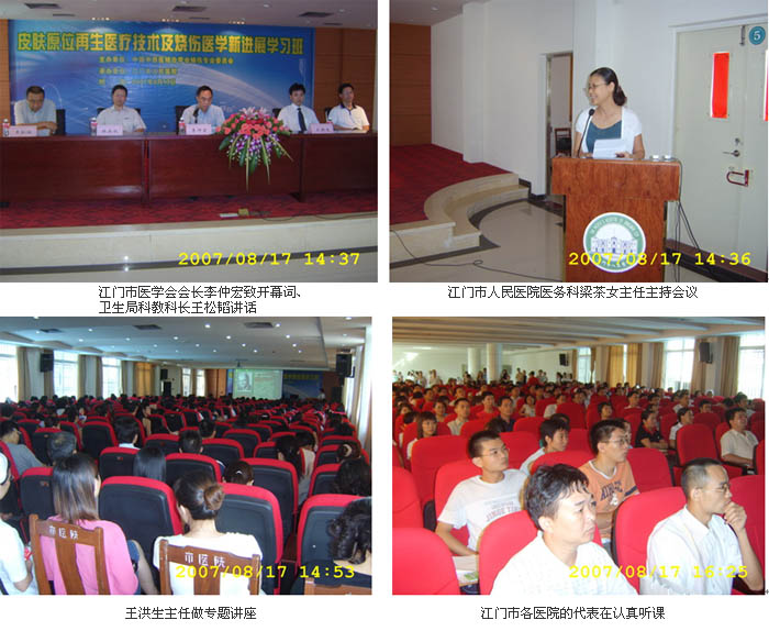 2007年8月17日下午2點30分,廣東江門市人民醫(yī)院門診三樓學術會議廳座無虛席,來自江門市人民醫(yī)院、江門市中心醫(yī)院、江門市五邑中醫(yī)院、江門市第二人民醫(yī)院、江門市第三人民醫(yī)院、江門市婦幼保健院、江門市皮膚病醫(yī)院、開平市、新會市、臺山市、鶴山市、恩平市及中山市等地市、縣、鄉(xiāng)鎮(zhèn)40多家各級醫(yī)療單位的400余名院長、科主任、相關專業(yè)的學科帶頭人、專家和業(yè)務骨干在這里參加了由中國中西醫(yī)結(jié)合學會燒傷專委會主辦、廣東江門市醫(yī)學會、江門市衛(wèi)生局、江門市人民醫(yī)院承辦的“燒傷醫(yī)學新進展學習班”。學習班開始前,舉行了簡短的開幕式,江門市醫(yī)學會會長李仲宏、江門市衛(wèi)生局科教科長王松韜、中國中西醫(yī)結(jié)合燒傷專委會常委、北京燒傷創(chuàng)瘍研究所副所長、臨床研究部主任王洪生、江門市人民醫(yī)院副院長方勝、林英權(quán)等領導應邀在主席臺就座。開幕式由江門市人民醫(yī)院醫(yī)務科主任梁茶女主持,江門市醫(yī)學會會長李仲宏致開幕詞,江門市衛(wèi)生局科教科長王松韜代表江門市衛(wèi)生局發(fā)表了熱情洋溢的講話。開幕式結(jié)束后學術會議開始。