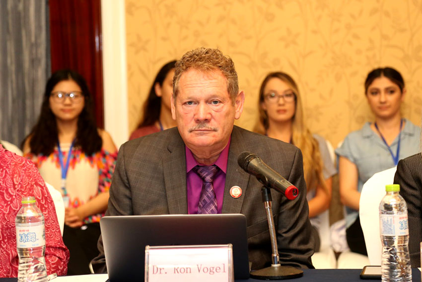 徐榮祥徐健康與公眾服務學院院長Ronald Vogel在儀式上發(fā)表講話,他對徐榮祥基金會支持發(fā)起的此次難得的學習機會深表感謝。他相信這樣的機會對于來到中國的這批特別甄選的護理學院和社工學院的優(yōu)秀學生乃至整個院系都是很好的歷練機會。他說,我們現(xiàn)在在中國又有了一個大家庭,我們所有的人都因為徐榮祥教授的價值觀和信仰而更好的聯(lián)結(jié)在了一起。我們專注于治療,滿足人們的各種需求,并一起努力消除人類的痛苦。
