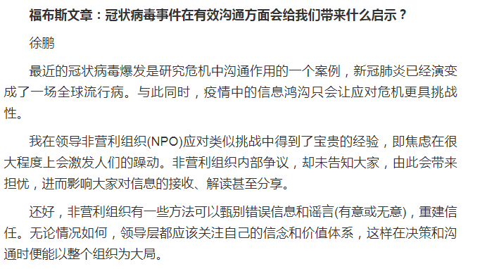 中國報道網(wǎng):冠狀病毒事件在有效溝通方面會給我們帶來什么啟示