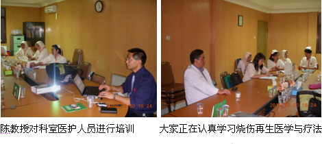 7、8月13日上午9時(shí),由醫(yī)師學(xué)會主辦的Jambi市級燒傷再生醫(yī)學(xué)臨床培訓(xùn)班(省級繼續(xù)教育項(xiàng)目,學(xué)分6分)在Raden Mattaher hospital的學(xué)術(shù)報(bào)告廳里舉辦,來自全是主要的4家政府醫(yī)院和其它10多家私營醫(yī)院的80多名臨床醫(yī)師、護(hù)士參加了這次培訓(xùn)會。培訓(xùn)會由Raden Mattaher hospital副院長Dr.Imanuel主持,醫(yī)院大外科主任Dr. Aziz介紹了應(yīng)用MEBO治療褥瘡的臨床經(jīng)驗(yàn),陳教授則應(yīng)邀作了“燒傷再生醫(yī)學(xué)與療法在燒傷、創(chuàng)瘍疾病治療的臨床規(guī)范應(yīng)用”的培訓(xùn)演講,很受大家的歡迎,達(dá)到了較理想的培訓(xùn)效果。
