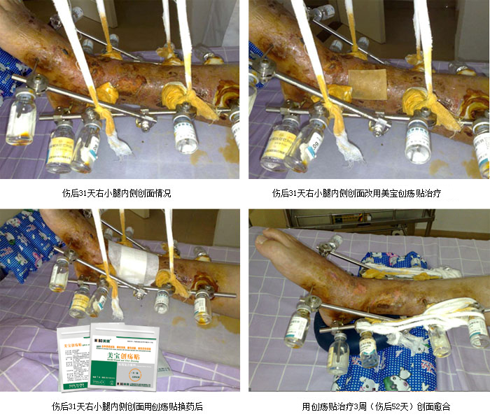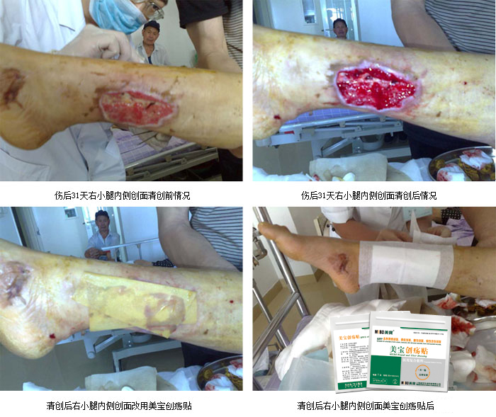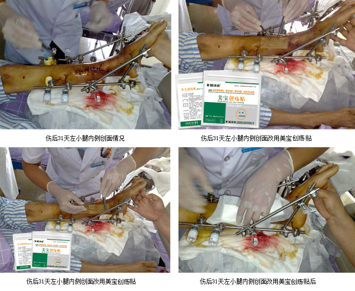 2008年6月12日以來(lái),為使收治四川地震傷員醫(yī)院的醫(yī)護(hù)人員應(yīng)用規(guī)范的皮膚原位再生復(fù)原技術(shù)處理合并創(chuàng)傷潰瘍的傷員,避免患者的創(chuàng)傷肢體因潰瘍創(chuàng)面處理不當(dāng)遭受截肢之苦,根據(jù)皮膚原位再生復(fù)原技術(shù)發(fā)明人、中國(guó)中西醫(yī)結(jié)合學(xué)會(huì)常務(wù)理事、中國(guó)中西醫(yī)結(jié)合學(xué)會(huì)燒傷專業(yè)委員會(huì)名譽(yù)主任委員徐榮祥教授指示,中國(guó)中西醫(yī)結(jié)合學(xué)會(huì)燒傷專業(yè)委員會(huì)常委、北京美寶燒傷創(chuàng)瘍研究所副所長(zhǎng)、臨床總部王洪生主任帶著徐榮祥教授為四川地震災(zāi)區(qū)合并有創(chuàng)傷潰瘍創(chuàng)面?zhèn)麊T愛心捐贈(zèng)的對(duì)皮膚、骨科潰瘍有獨(dú)特療效的美寶濕潤(rùn)燒傷膏、美寶創(chuàng)瘍貼等外用藥物和醫(yī)用復(fù)合敷料先后3次到福建醫(yī)科大學(xué)附屬?gòu)B門第一醫(yī)院杏林分院集中收治四川地震災(zāi)區(qū)傷員的愛心病區(qū)查看傷員,對(duì)相關(guān)醫(yī)護(hù)人員進(jìn)行臨床傳、幫、帶,現(xiàn)場(chǎng)示范指導(dǎo)主管醫(yī)生為合并有創(chuàng)傷潰瘍創(chuàng)面的傷員用規(guī)范的皮膚原位再生復(fù)原技術(shù)為傷員潰瘍創(chuàng)面換藥,所有合并骨科及皮膚潰瘍的創(chuàng)面運(yùn)用皮膚原位再生復(fù)原技術(shù)并改用美寶創(chuàng)瘍貼或美寶濕潤(rùn)燒傷膏油紗(MEBO油紗)換藥治療3周后,大部分潰瘍創(chuàng)面愈合或基本愈合,較大的骨外露創(chuàng)面也明顯好轉(zhuǎn),創(chuàng)面正在愈合中,從而避免了因創(chuàng)面處理不當(dāng)給患者造成截肢之痛。