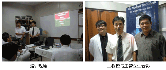 10月12日,王教授與菲律賓骨科中心的醫(yī)生做了交流。王教授通過美寶再生醫(yī)學(xué)療法在燒傷、創(chuàng)傷、潰瘍等的臨床應(yīng)用并闡述了再生醫(yī)學(xué)原理;在臨床操作中,對于感染創(chuàng)面,微粒皮種植等技術(shù)做了重點(diǎn)解釋,使培訓(xùn)醫(yī)生受益匪淺。受訓(xùn)醫(yī)生表示有信心引進(jìn)此技術(shù)并將之推廣到全科室。
