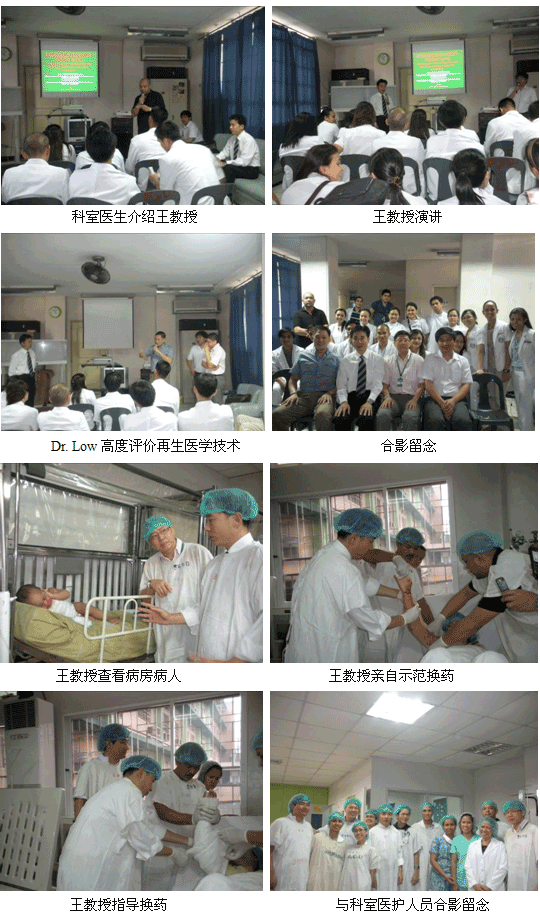 10月15日上午, 王教授來到Jose Reyes Memorial Medical Center醫(yī)療中心,與燒傷科醫(yī)生做了學(xué)術(shù)交流和討論,并做了關(guān)于美寶再生療法臨床應(yīng)用的最新報(bào)告。Dr. Low也對美寶再生醫(yī)學(xué)治療方法和其他醫(yī)生談了自己的感受。值得一提的是,燒傷科主管醫(yī)生Dr. Sy 將在11月15日到廣州參加為期2周關(guān)于深度和大面積燒傷的培訓(xùn),王教授表示一定會讓Dr.Sy不虛此行,系統(tǒng)的學(xué)習(xí)大面積和深度創(chuàng)面的治療方法。