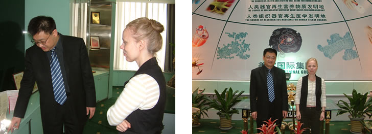 Margaret女士目前的研究課題是世界不同國家在生命科學研究領域的立法或政策控制對科學的促進或阻礙作用,她希望了解到世界知名科學家如何看待自己的工作和他們的科學思維方式。最近,她訪問過許多成體干細胞、臍帶血干細胞和胚胎干細胞領域的科學家,調(diào)查他們的科研思維,在多位瑞典科學家的推薦下,她得知美寶國際集團在利用干細胞原位再生燒傷皮膚和胃腸黏膜器官方面取得的成就,故此次專程來到美寶國際集團采訪了徐榮祥教授。