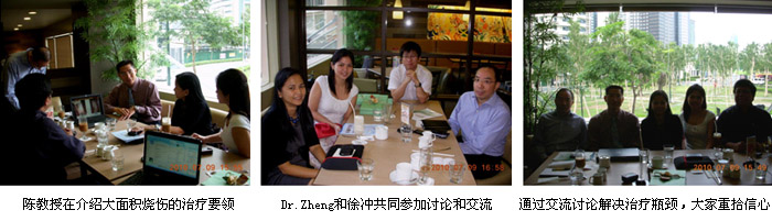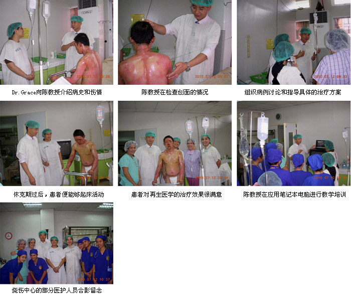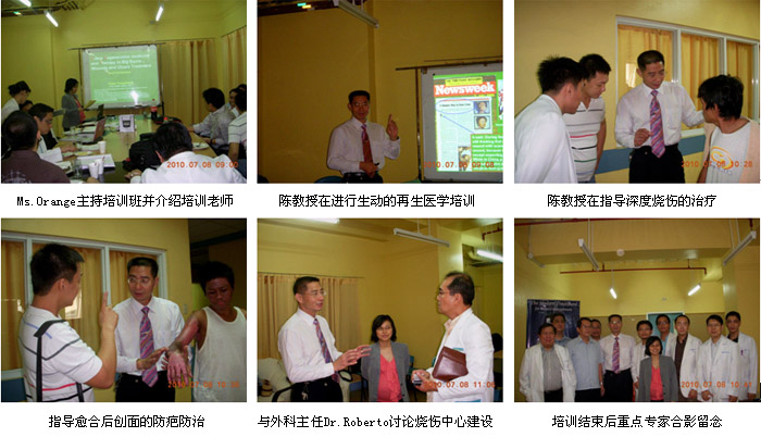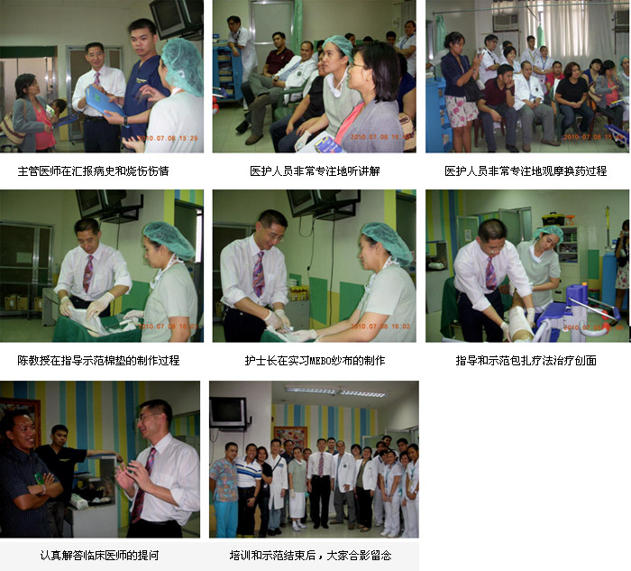 2010年7月7日首家再生醫(yī)學燒傷創(chuàng)瘍治療中心在菲律賓首都馬尼拉正式掛牌成立后,來自中國北京MEBO燒傷創(chuàng)瘍研究所國際部的徐沖與菲律賓方面負責再生醫(yī)學技術推廣的Ms.Orange進行了認真的討論、組織和策劃,在接下來的5天時間里,成功展開了一系列的、方式靈活的醫(yī)療開發(fā)和維護工作。期間,中國燒傷創(chuàng)瘍科技中心臨床部主任、北京榮祥再生醫(yī)學研究所副所長、北京中西醫(yī)結合學會燒傷專業(yè)委員會副主任委員陳永翀教授,先后應邀到4家政府醫(yī)院,進行燒傷再生醫(yī)學技術培訓、學術交流,以及到燒傷中心會診指導大面積燒傷病例的治療,受到醫(yī)院、醫(yī)師、護士和患者的歡迎。在短短的5天時間里,舉辦了院級培訓班3期,燒傷中心內部培訓2期,重點專家學術交流3次,培訓了燒傷、整形、普通外科、骨科的醫(yī)師和護士59名,對 2家重點老醫(yī)院進行了有效的維護和促進,成功新開發(fā)了2家政府教學醫(yī)院,會診、指導特重度燒傷1例,重度燒傷2例,疤痕1例,實現(xiàn)了較好的醫(yī)療開發(fā)、維護和進一步規(guī)范臨床技術的效果。