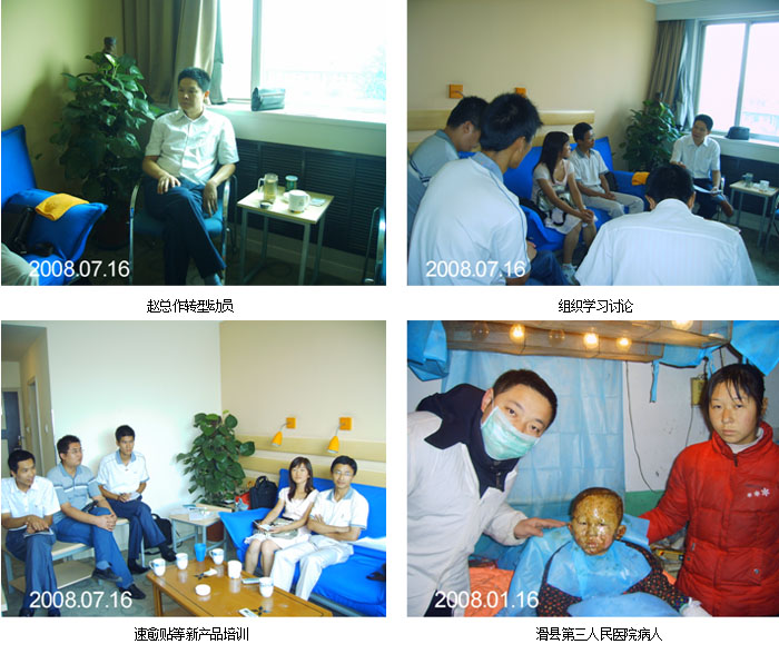 河南省地方美寶于7月15-16日召開全體區(qū)域人員經營轉型工作會,參會人員有醫(yī)療部主任、區(qū)域經理、新招人員。會議議程分四部分:一、河南地方美寶總裁趙俊國進行轉型會議動員,傳達集團全面經營轉型工作會議紀要;二、學習區(qū)域經理、業(yè)務員規(guī)章制度及工作職責。結合本人的月工作總結,逐個講評,總結經驗教訓,完善工作計劃;三、以鞏固燒傷市場占領創(chuàng)傷潰瘍大外科終端為主題。請終端開發(fā)工作業(yè)績好的同志介紹經驗,組織座談討論,搞好傳幫帶打造美寶高科技產品經營隊伍;四、醫(yī)療部金黨軍主任對參會人員進行下半年沙盤計劃的工作部署,結合集團經營轉型工作會議精神和速愈貼在多學科臨床的應用,結合典型病例進行培訓。通過這次會議達到如下目的:1、通過相互交流經驗,以老幫新,使新人對美寶企業(yè)文化、美寶人精神,美寶新產品有更深層的了解,有利于促進下一步工作的全面展開;2、拓寬思路進一步深化經營轉型,在鞏固燒傷醫(yī)療市場的同時努力開發(fā)創(chuàng)傷潰瘍終端市場;3、河南美寶團隊決心在醫(yī)藥集團領導統(tǒng)一指揮下借此機遇努力完成08年沙盤計劃,打造美寶高科技產品經營團隊。