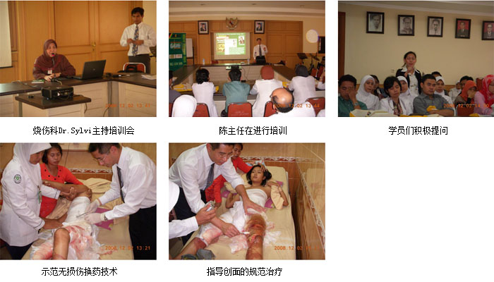 11月17日~12月4日,經(jīng)過積極的聯(lián)系、組織和策劃,中國燒傷創(chuàng)瘍科技中心臨床部主任、北京美寶燒傷創(chuàng)瘍研究所副所長陳永翀主任和美寶集團國際部亞洲區(qū)經(jīng)理賈景皓應(yīng)邀到印度尼西亞大爪哇區(qū)的Jakarta City(首都)、Badung City、Semarang City、yogyakarta City、Solo City、Tangerang City、Serang City、Cilegon City 和Medan City主要城市,進行巡回演講和臨床指導(dǎo)??偣才e辦了12期市級培訓(xùn)班, 接受培訓(xùn)的人員有來自40多個單位的醫(yī)師、護士500余人;分別到9家醫(yī)院的燒傷科和外科進行了會診、技術(shù)指導(dǎo)、操作示范,指導(dǎo)治療的燒傷創(chuàng)瘍患者19例。通過一系列的臨床指導(dǎo)示范,既傳授了臨床經(jīng)驗,同時也規(guī)范了臨床操作技術(shù)、提高了臨床治療效果,而且有效增強了各醫(yī)院和醫(yī)師全面使用再生醫(yī)學(xué)技術(shù)的信心。在印尼的大爪哇區(qū)掀起了學(xué)習(xí)應(yīng)用再生醫(yī)學(xué)技術(shù)的高潮。