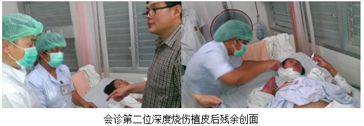 隨后,在當(dāng)?shù)厝藛T陪同下,美寶團(tuán)隊(duì)來(lái)到Paolo Siam醫(yī)院急診科會(huì)議室,與兩名重點(diǎn)Dr.Thaweesak, Dr.Kawee見(jiàn)面,回答了他們?cè)谑褂迷偕夹g(shù)時(shí)碰到的一些問(wèn)題。同時(shí),Dr. Thaweesak手術(shù)治療了一位開(kāi)胸術(shù)后,手術(shù)切口巨型疤痕疙瘩,病人因?yàn)樵錾园毯蹚?fù)發(fā)求診。王教授給予會(huì)診意見(jiàn),強(qiáng)調(diào)手術(shù)結(jié)合再生醫(yī)療技術(shù)治療各類瘢痕復(fù)發(fā)率很低,可以大膽嘗試。