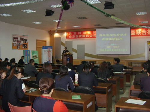 [2005年4月15日,山東濰坊]  2005年4月15日至17日,山東濰坊國青醫(yī)藥有限公司邀請了商業(yè)和醫(yī)院客戶舉行了“美寶系列產(chǎn)品推介會”,在三天的活動中,安排了豐富的活動,國青醫(yī)藥下屬連鎖藥店店員參加了美寶產(chǎn)品知識培訓(xùn),并舉行了產(chǎn)品促銷。