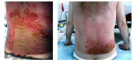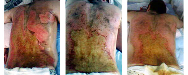 就這樣,丹尼爾留在汕頭海軍醫(yī)院燒傷創(chuàng)瘍治療中心接受治療。一位燒傷面積大約12%(淺II度4%、深I(lǐng)I度5%、淺III度3%)的嚴(yán)重?zé)齻颊?,?jīng)全體醫(yī)務(wù)人員的精心治療護(hù)理和中國燒傷創(chuàng)瘍科技中心臨床總部的陳永翀主任的多次電話會診和指導(dǎo),丹尼爾順利而無痛苦的度過了皮膚燒傷治療的滲出、液化和再生修復(fù)期。由于得到及時有效的治療,背部的深Ⅱ度創(chuàng)面在住院后的25天就長出跟他以前一模一樣的皮膚(生理性愈合),腰部的淺Ⅲ度創(chuàng)面也在接受治療后的第45天無植皮、無疤痕愈合(再生修復(fù))?,F(xiàn)在背的皮膚彈性良好,受傷前有毛的部位現(xiàn)在也恢復(fù)了原狀。再一次證明燒傷皮膚再生醫(yī)學(xué)技術(shù)不僅適合黃種人,而且對白種人的深度皮膚燒傷同樣是非常有效的。