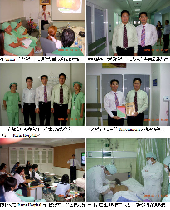 3、大型教學(xué)醫(yī)院燒傷中心成為維護(hù)、提高的重點(diǎn)------曼谷Siriraj Hospital 和 Rama Hospital燒傷中心的維護(hù)現(xiàn)成效。這2家醫(yī)院是泰國最大的和第二大的醫(yī)科大學(xué)教學(xué)醫(yī)院,都有獨(dú)立的燒傷中心,泰國大部分燒傷整形醫(yī)師都是從這里培養(yǎng)出來的,學(xué)術(shù)地位和技術(shù)權(quán)威非同一般。所以安排進(jìn)行重點(diǎn)的維護(hù)和提高其臨床大面積燒傷救治努力的一系列的培訓(xùn)、學(xué)術(shù)交流、病例討論和臨床指導(dǎo)等活動(dòng),收效明顯。