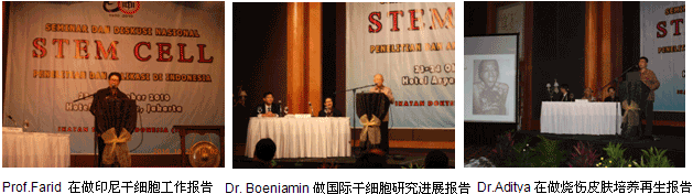 2010年10月24日下午,“2010年印尼‘干細(xì)胞’研究與應(yīng)用全國研討會”勝利結(jié)束了,這是一次成功和具有里程碑意義的大會。用大會秘書長的話說:這是一次非常成功的會議,通過這次會議使印尼從事干細(xì)胞研究的專家和臨床醫(yī)師更全面地了解了世界上干細(xì)胞研究與應(yīng)用領(lǐng)域的最新進(jìn)展,特別是從中國來的陳永翀教授把目前世界上最好的、最方便實用的干細(xì)胞原位再生培養(yǎng)技術(shù)帶到了印尼,為印尼干細(xì)胞研究領(lǐng)域提供了新的研究思路和方向,為原位干細(xì)胞培養(yǎng)再生技術(shù)在印尼的臨床應(yīng)用注入了一支興奮劑和強心劑,使應(yīng)用干細(xì)胞培養(yǎng)再生技術(shù)治療印尼的燒傷、創(chuàng)瘍患者成為了現(xiàn)實。