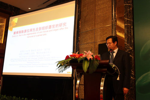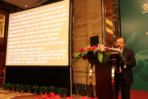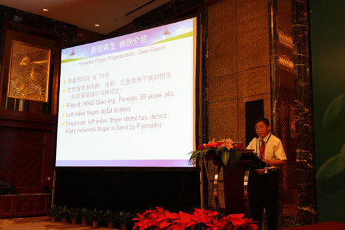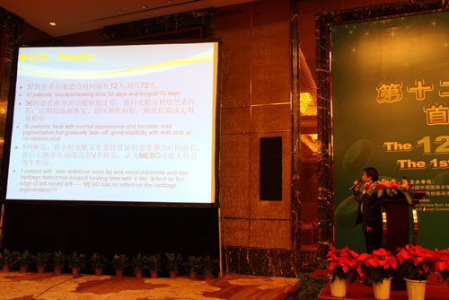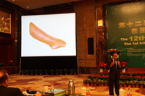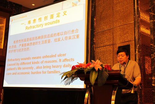 學(xué)術(shù)交流于8點30正式開始,國內(nèi)外代表輪流進(jìn)行學(xué)術(shù)交流報告。首先,來自馬來西亞的燒傷整形外科醫(yī)生Dr. Shah Jumaat BinMohd Yussof以“再生醫(yī)療技術(shù)與微粒皮種植術(shù)在雙溪毛魯醫(yī)院的臨床經(jīng)驗”為主題進(jìn)行了交流;接著,趙賢忠教授以“疤痕移除原位再生皮膚組織器官的研究”為主題進(jìn)行交流;來自敘利亞整形外科中心主任Dr. Adham mansour以“20年再生醫(yī)療技術(shù)在敘利亞的臨床應(yīng)用經(jīng)驗”為主題進(jìn)行學(xué)術(shù)報告;來自馬來西亞的婦產(chǎn)科醫(yī)生Dr.Noor HaIiZa Yussoff以“再生醫(yī)療技術(shù)治療感染的腹部手術(shù)切口以及其它婦產(chǎn)科創(chuàng)面的臨床經(jīng)驗”為主題作了交流;隨后,來自四川什邡程德躍院長介紹了皮膚原位再生復(fù)原技術(shù)在磷燒傷創(chuàng)面治療中的臨床應(yīng)用,什邡地區(qū)是磷燒傷多發(fā)的區(qū)域,當(dāng)?shù)氐幕S多,在多年的臨床實踐中,他們積累了大量經(jīng)驗,為數(shù)百位磷燒傷患者挽救了生命,使創(chuàng)面得到了良好地愈合;成都市第三人民醫(yī)院的龔麟主任介紹了原位再生醫(yī)療技術(shù)在美容激光治療后修復(fù)皮膚的經(jīng)驗,他展示了大量美容案例,有面部雀斑、血管瘤、瘢痕、復(fù)發(fā)性甲溝炎、紋身的祛除等,效果顯著;印度尼西亞臨床教育培訓(xùn)中心主席、整形外科醫(yī)生Dr. Teddy O.H. Prasetyono博士介紹了瘢痕為主的創(chuàng)面愈合,這位醫(yī)生給代表們的印象非常深刻,他雖然是一位殘疾人,但是他的演講生動,富有感染力,從他所介紹的病例中可以看出,他對于皮膚再生醫(yī)療技術(shù)的認(rèn)可與敬業(yè)精神;之后,四川甘孜州人民醫(yī)院燒傷整形科主任李正希介紹了皮膚再生醫(yī)療技術(shù)在高原地區(qū)的應(yīng)用體會,李主任曾經(jīng)是一位胸外科醫(yī)生,由于甘孜州地處高原,很多燒傷患者從前只能送至成都等地的醫(yī)院救治,往往因為錯過了治療的最佳時機(jī),給患者的生命安全乃至創(chuàng)面的愈合造成不利的影響,于是,他在學(xué)習(xí)了皮膚再生醫(yī)療技術(shù)之后,在醫(yī)院的支持下成立了燒傷科,從此,當(dāng)?shù)匾患壷苓叺臒隣C傷患者在當(dāng)?shù)鼐涂梢缘玫搅己玫木戎危煌荒崴箛夜强蒲芯垦芯吭豪懑熆祻?fù)科骨外科主任Dr. Catherine Dziril教授分享了她應(yīng)用再生醫(yī)療技術(shù)治療壓瘡的經(jīng)驗;四川雅安人民醫(yī)院燒傷整形科主任付子俊介紹了皮膚癌的臨床治療體會,付主任和他的團(tuán)隊不僅僅規(guī)范地將皮膚再生醫(yī)療技術(shù)應(yīng)用于燒傷創(chuàng)瘍等創(chuàng)面的修復(fù)中,尤其擅長治療皮膚癌,大量的皮膚癌患者經(jīng)過治療后均痊愈并無復(fù)發(fā)發(fā)生;陜西安康市中醫(yī)院王俊主任介紹了MEBO治療面部軟組織缺損的臨床體會;河南寶豐中醫(yī)院任建生主任介紹了斷指再生治療經(jīng)驗,他所治療的一位患者被評為第三屆創(chuàng)瘍康復(fù)明星,這位患者的手指末端離端得到了完全再生修復(fù),這種修復(fù)不僅僅是皮膚的再生修復(fù),而是包括指甲在內(nèi)的手指的全部組織器官的再生修復(fù),斷指的再生修復(fù)在很多醫(yī)院都有大量病例,本屆會議的交流資料《燒傷創(chuàng)瘍康復(fù)明星集萃》中發(fā)布了很多典型的斷指再生修復(fù)病例;四川涼山衛(wèi)校馮映東院長介紹了高壓電弧燒傷的MEBO治療分析;成都大學(xué)附屬醫(yī)院急診科主任梁隆斌教授介紹了再生醫(yī)療技術(shù)在各種急診創(chuàng)面的應(yīng)用,急診的外傷患者較多,及時的創(chuàng)面處理為后續(xù)的治療節(jié)省了寶貴的時間,而且,有的患者經(jīng)過門診治療后,由于康復(fù)時間縮短,節(jié)省了因住院給患者帶來的經(jīng)濟(jì)負(fù)擔(dān);延安大學(xué)附屬醫(yī)院薛宏斌主任介紹了難愈性創(chuàng)面的MEBT/MEBO臨床應(yīng)用;中國中西醫(yī)結(jié)合學(xué)會燒傷專業(yè)委員會委員金黨軍主任介紹了皮膚原位再生復(fù)原技術(shù)瘢痕防治臨床規(guī)范應(yīng)用,金主任對瘢痕的防治有著多年的臨床經(jīng)驗,尤其掌握了規(guī)范的操作技術(shù),很多醫(yī)院的醫(yī)生和患者在遇到此類問題的時候,都會向他請教,他通過各種方式對醫(yī)生和患者進(jìn)行指導(dǎo);江蘇金壇中醫(yī)院燒傷整形科戴揚主任分享了他在應(yīng)用皮膚再生醫(yī)療技術(shù)治療燒傷等創(chuàng)面的經(jīng)驗。
