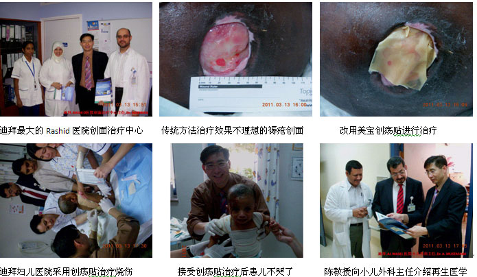 三、理論與實踐結合、培訓與示范結合,新產品直接到達市場終端。在新產品美寶創(chuàng)瘍貼的推廣發(fā)布期間,陳永翀教授先后應邀到迪拜最大的政府醫(yī)院------迪拜醫(yī)學院附屬RASHID醫(yī)院的Wound Care Center(創(chuàng)面治療中心)、迪拜婦兒醫(yī)院小兒外科、阿布扎比的Al AhlinHospital、Lipe Line Clinic向個醫(yī)院的主任、醫(yī)師和護士們介紹了美寶創(chuàng)瘍貼的再生醫(yī)學原理,分別在2例長期不愈合的褥瘡創(chuàng)面、1例小兒燒傷創(chuàng)面和1例11年長期不愈合的創(chuàng)面上講解和示范了美寶創(chuàng)瘍貼的使用方法,使大家更直觀地掌握了正確的使用方法。