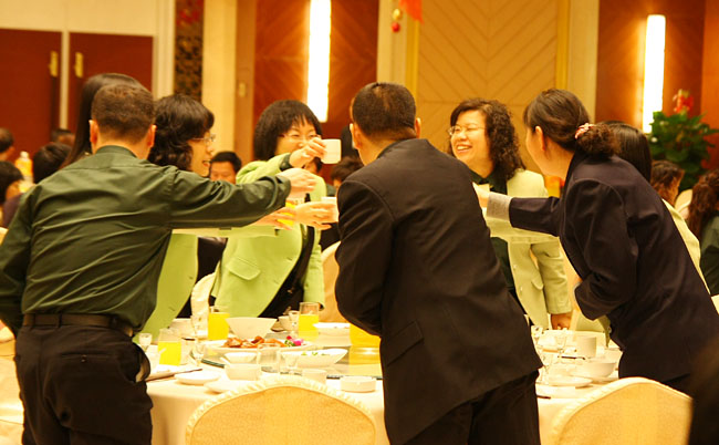 會(huì)議閉幕后,與會(huì)人員一起高舉酒杯共賀美寶再生大業(yè)。在閉幕酒會(huì)結(jié)束之際,美寶國(guó)際集團(tuán)再生大俱樂(lè)部的員工還給與會(huì)人員獻(xiàn)上了精彩的文藝節(jié)目。文藝晚會(huì)上,徐榮祥教授充滿激情地說(shuō),美寶已經(jīng)走上了一條通往美好未來(lái)的道路。接著他還為大家高歌一曲《天路》,優(yōu)美的歌聲迎來(lái)了陣陣掌聲,將晚會(huì)的氣氛推向了高潮。