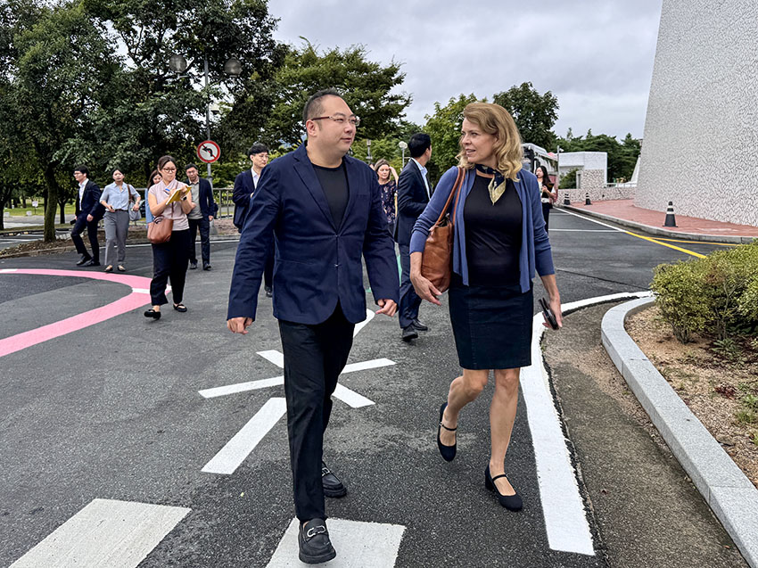 2025年9月10日,美寶集團董事局主席、前APEC籌委會主席徐鵬應邀與APEC中心副總裁芭芭拉一行,會同APEC工作組成員及多位參會代表,前往韓國慶州藝術中心開展2025年APEC CEO峰會場館巡館工作,實地檢查峰會籌備進展。