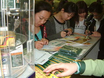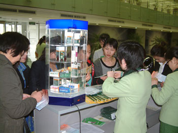 上午八時,隨著上班高峰的來臨,匆匆而過的上班族被再生養(yǎng)生營銷集團的展臺深深吸引,紛紛駐足,進行咨詢。一時間,整個大廳里人聲鼎沸,有的先來者趴在展臺上,認(rèn)真填寫問卷調(diào)查表,同時向再生健康咨詢員詢問一些有關(guān)胃腸的健康問題;有的性急者看到展臺由于人多沒地方填寫調(diào)查表,就干脆以同伴的后背為墊板開始填寫;有的圍在旋轉(zhuǎn)產(chǎn)品展臺前觀看產(chǎn)品,興奮的討論、咨詢。有幾個年齡大點的客戶不只自己咨詢胃腸健康問題,還把同伴介紹過來詢問,再生養(yǎng)生營銷集團的一線人員熱情地給予了解答。
