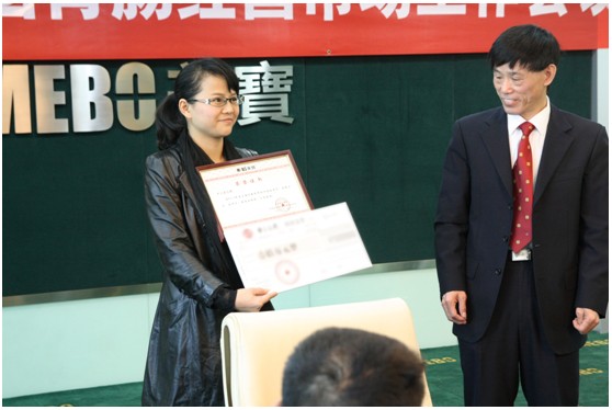上午會議一項重要議程是給在2012年經(jīng)營中取得突出成績的省區(qū)代表頒發(fā)獎狀、獎金和獎品,當(dāng)獲得“最佳業(yè)績獎”的四川總經(jīng)理羅天銘、獲得“最佳新秀獎”的黑龍江總經(jīng)理楊中端、獲得“最佳進(jìn)步獎”的湖南總經(jīng)理龔光春,從陳寶琪總裁手中接過榮譽時,全場響起了祝賀的掌聲和贊許聲。