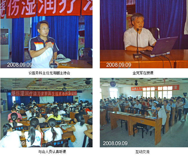 2008年9月9日下午2點(diǎn)30分,由永州市中醫(yī)院承辦的《燒傷再生醫(yī)療技術(shù)診療與護(hù)理學(xué)習(xí)班》在湖南永州市舉行,永州市多家各級醫(yī)療單位的150多名科主任、相關(guān)專業(yè)的學(xué)科帶頭人、專家和業(yè)務(wù)骨干參加了學(xué)習(xí)班。學(xué)習(xí)班開始前,舉行了簡短的開幕式,由永州市人民醫(yī)院醫(yī)務(wù)科主任龍海鵬主持,并代表院領(lǐng)導(dǎo)致賀詞。