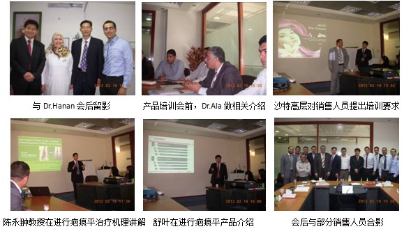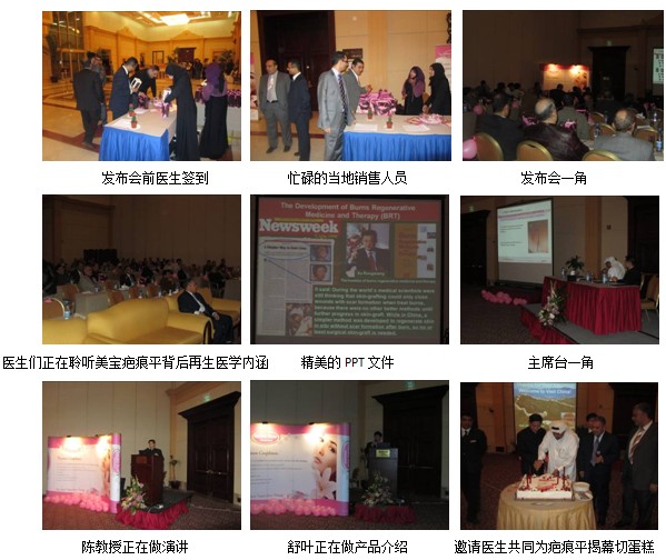 自2011年疤痕平軟膏在中東地區(qū)數(shù)個國家拿下CPP(Certificate of Pharmaceutical Product)藥品證書之后,美寶疤痕平已正式以藥品身份進(jìn)入醫(yī)院銷售渠道。在美寶國際市場集團(tuán)及其合作伙伴海灣Julphar藥廠積極的組織安排下,分別在沙特三大城市吉達(dá)、達(dá)曼、利雅得成功舉辦產(chǎn)品發(fā)布會,共計有來自各市醫(yī)療機構(gòu)的440名臨床醫(yī)護(hù)人員參加了產(chǎn)品發(fā)布會。其間,訪問了當(dāng)?shù)刂攸c醫(yī)生13名,會診病例5名,直接培訓(xùn)當(dāng)?shù)匾痪€銷售人員25名。培訓(xùn)團(tuán)隊由來自中國燒傷創(chuàng)瘍科技中心臨床部主任、北京榮祥再生醫(yī)學(xué)研究所副所長、北京中西醫(yī)結(jié)合學(xué)會燒傷專業(yè)委員會副主任委員、中國燒傷創(chuàng)瘍雜志社副社長的陳永翀教授及美寶國際集團(tuán)產(chǎn)品部主管舒葉組成。培訓(xùn)內(nèi)容包括疤痕治療選擇、疤痕形成原因、疤痕平組成成分、再生醫(yī)學(xué)-抗疤痕機理、疤痕平臨床使用方法、美寶疤痕平聯(lián)合無創(chuàng)或有創(chuàng)方法治療各種疤痕的典型病例介紹等。具體情況報道如下: