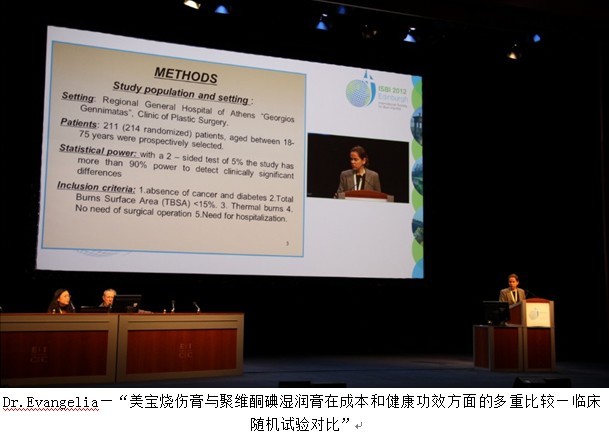 最后壓軸出場的是來自希臘的燒傷治療專家Dr.Evangelia Tsati,她以“Comparing cost and multiple health outcomes between oil baded ointment and povidone iodine plaus moisturizing cream under different aspects: A pragmatic Randdomized Trial”為題介紹自己參與的在希臘進(jìn)行的多中心臨床對比試驗(yàn),演講包含了大量的對比數(shù)據(jù)和科學(xué)論證,從治愈時(shí)間、治療便捷性、病人痛苦程度、治療費(fèi)用等多個(gè)方面進(jìn)行了詳細(xì)的對比闡述,結(jié)果顯示美寶在病人愈合時(shí)間、住院時(shí)間以及整體花費(fèi)上全部優(yōu)于對照組!由于時(shí)間問題,她沒法答疑,但是會后作為唯一的女性演講者,她獲得了所有專題會聽眾最高的評價(jià)—“科學(xué)和完美的演講”!