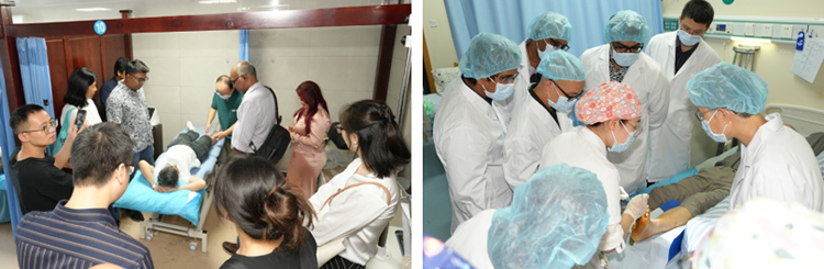 9月16日,代表團(tuán)首站訪問(wèn)湖南中醫(yī)藥大學(xué)第二附屬醫(yī)院。醫(yī)院黨委副書(shū)記游柏穩(wěn)代表院方致歡迎辭。隨后,皮膚中心創(chuàng)面修復(fù)科副主任田毅與侯玉潔醫(yī)生分別就典型病例進(jìn)行了分享,以深入淺出的方式介紹了再生醫(yī)療技術(shù)在創(chuàng)面管理中的應(yīng)用機(jī)制,使代表團(tuán)對(duì)該技術(shù)有了更深入的理解。分享結(jié)束后,代表團(tuán)前往針灸推拿康復(fù)中心,參觀并親身體驗(yàn)了針灸、閃罐等傳統(tǒng)中醫(yī)治療方法。隨后,代表團(tuán)走進(jìn)創(chuàng)面修復(fù)科病房,現(xiàn)場(chǎng)觀摩了應(yīng)用再生醫(yī)療技術(shù)為糖尿病足及放射性皮炎患者規(guī)范換藥的全過(guò)程,并就放射性皮炎在創(chuàng)面處理中的難點(diǎn)與關(guān)鍵治療環(huán)節(jié)進(jìn)行了交流。參觀環(huán)節(jié)結(jié)束后,雙方專家再度座談,圍繞慢性創(chuàng)面治療的最新進(jìn)展、中馬兩國(guó)醫(yī)療體系的差異等議題展開(kāi)了深入討論。