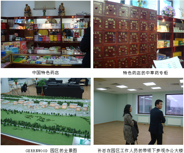 會(huì)談之后,孫總一行參觀了具有中國(guó)特色的藥店、GREENWOOD園區(qū)等。在園區(qū)內(nèi),考察了多個(gè)項(xiàng)目場(chǎng)所,基本確定了俄美寶公司的辦公選址、公司初建等意向。有政府背景的高科技的國(guó)際化園區(qū)為美寶初期公司的建立提供了安全、可靠的保證。