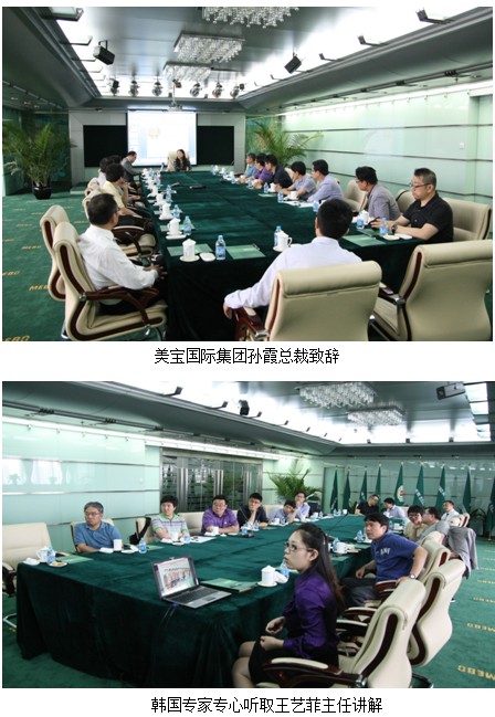 6月15日,韓國(guó)專家及一行人等在美寶國(guó)際集團(tuán)國(guó)際市場(chǎng)部韓國(guó)經(jīng)理孫園的帶領(lǐng)下,到美寶總部參觀學(xué)習(xí)。美寶國(guó)際市場(chǎng)集團(tuán)孫霞總裁代表集團(tuán)對(duì)來(lái)訪嘉賓致歡迎詞,并簡(jiǎn)單介紹了美寶集團(tuán)的整體情況。