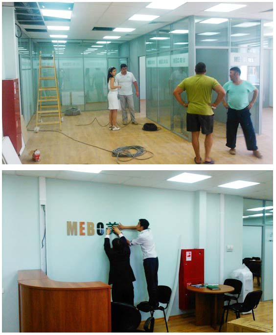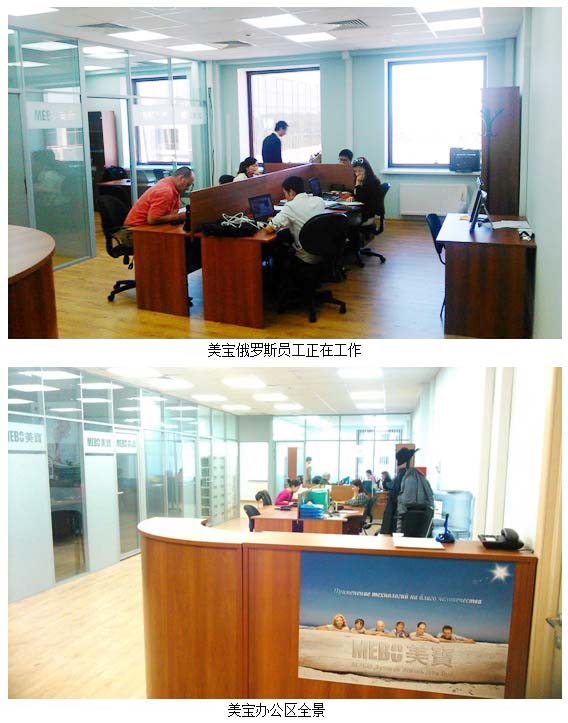 美寶俄羅斯分公司坐落在格林伍德國貿(mào)中心的核心區(qū)——17號商務(wù)辦公樓,租用建筑面積203平米,根據(jù)業(yè)務(wù)需求內(nèi)部布局分為接待溝通區(qū)、公共辦公區(qū)、會議培訓(xùn)區(qū)、經(jīng)理室、財務(wù)室、周轉(zhuǎn)庫等幾部分。分公司籌備組迅速開展各項準(zhǔn)備工作,落實公司注冊、招聘培訓(xùn)本地員工,按項目進(jìn)度完成了從設(shè)計裝修、家具采購、到布線安裝、設(shè)備調(diào)試等一系列營運準(zhǔn)備工作,大家親自動手布置裝飾辦公室,即節(jié)省了費用又促進(jìn)了溝通,將美寶再生復(fù)原科學(xué)的旗幟插到了莫斯科。