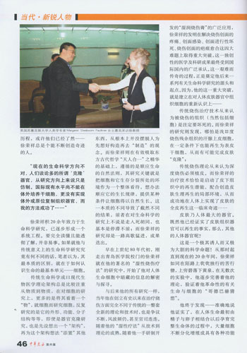 “從科研的角度講,5年前就已經(jīng)是成功的。因?yàn)槿绻麤](méi)有成功的基礎(chǔ)就宣布5年后完成,那我等于自殺!其所以當(dāng)時(shí)宣布用5年時(shí)間完成全部人體組織器官克隆,是要在已經(jīng)成功的基礎(chǔ)上,進(jìn)一步重復(fù)驗(yàn)證……”